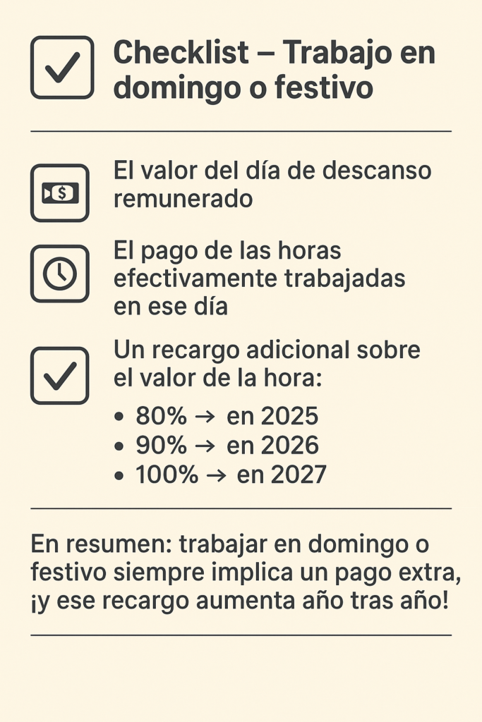 En caso de trabajo en domingo o festivo, el empleador deberá pagar: